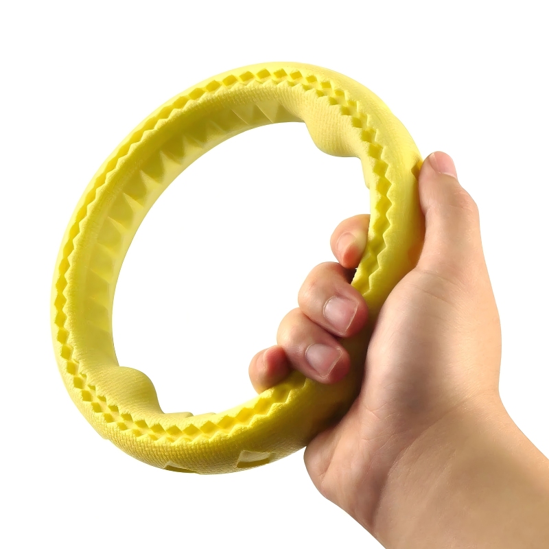 Hondenspeelgoedrubberen ringenzijn duurzaam en veilig, en het braamvrije ontwerp kan voorkomen dat huisdieren per ongeluk kleine verhoogde hoeken eten. Alle hoeken worden gemaakt in "afgeronde hoeken" om te voorkomen dat de tongen van huisdieren worden gesneden. De kern van het speelgoed is ontworpen als een holle structuur en de gecontroleerde wanddikte (siliconen ≥3 mm, plastic ≥2 mm) kan voorkomen dat barsten en bijten. De textuur en het ontwerp van rubberen hondenringen helpen honden om hun tanden en tandvlees te reinigen en blijvende stimulatie en plezier te bieden. Ons hondenspeelgoed is duurzaam en zeer resistent om te voldoen aan de speelbehoeften met hoge intensiteit van honden.