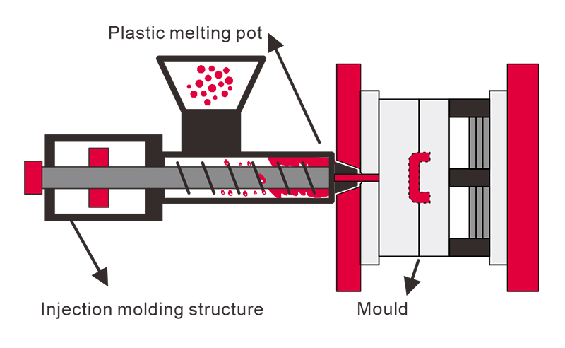 Plastic spuitgietenProces bestaat uit zeven stappen: drogen, smelten, hogedrukinjectie, drukbehoud en krimpcompensatie, koeling en instelling, malopening en uitwerping en inspectie na de verwerking.